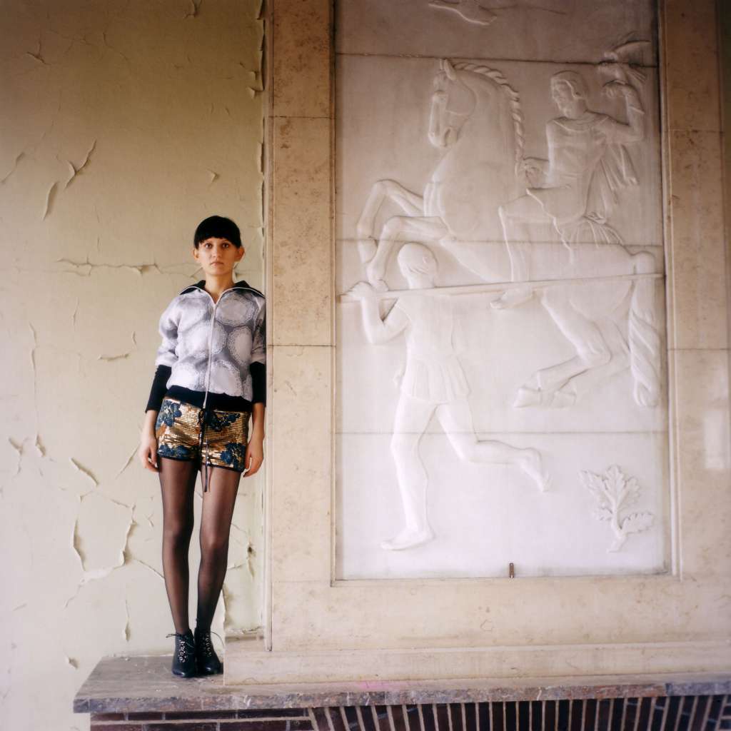 Knautschlack und Leder ausgestanzt, Pailletten, Handarbeit